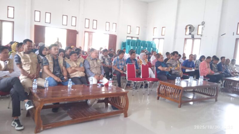 MUNA BARAT, — Pemerintah Kabupaten Muna Barat menunjukkan keseriusannya dalam menindaklanjuti Instruksi Presiden Nomor 17 Tahun 2025 tentang percepatan pembangunan fisik gerai, pergudangan, dan perlengkapan Koperasi Desa/Kelurahan Merah Putih. Hal itu terlihat dalam rapat yang digelar di Aula Kantor Bupati Muna Barat, Selasa (28/10/2025), yang dihadiri oleh Wakil Bupati Muna Barat, Ali Basa, bersama 81 kepala desa, 5 lurah, dan berbagai pemangku kepentingan terkait.