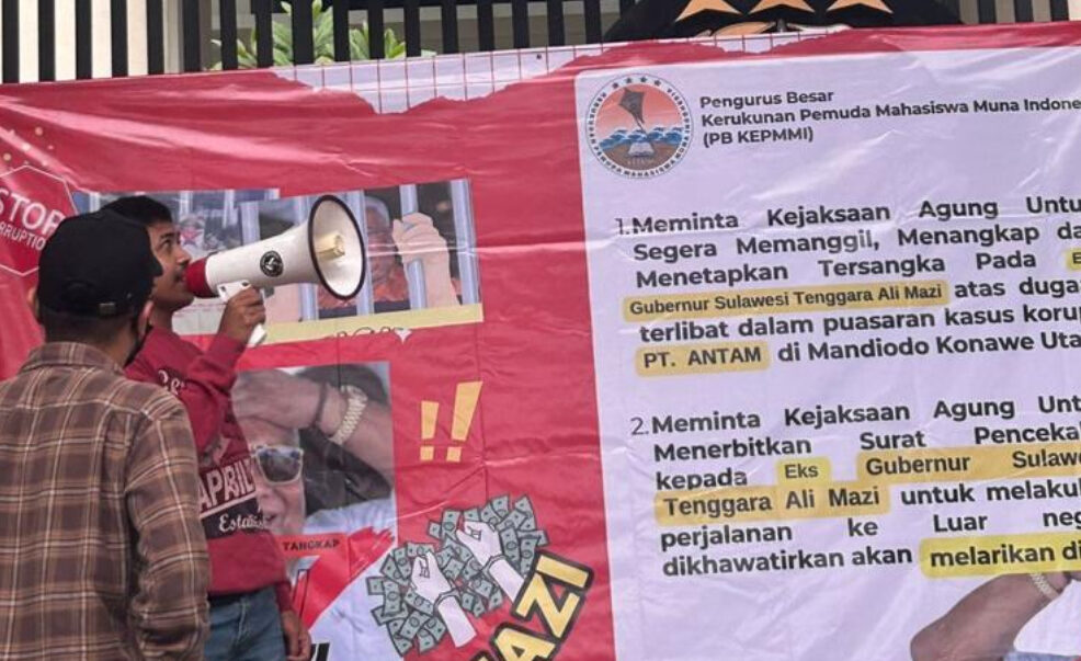 Jakarta,- Sekretaris Jenderal Kesatuan Pemuda Mahasiswa Muna Indonesia (PB KEPMMI) La Ode Iswar Anugrah meminta Kejaksaan Agung (Kejagung) untuk segera menetapkan tersangka pada mantan Gubernur Sulawesi Tenggara (Sultra) Ali Mazi atas dugaan terlibat dalam kasus korupsi pertambangan di Wilayah Izin Usaha Pertambangan (WIUP) PT Antam Tambang (Antam) UBPN Blok Mandiodo, Konawe Utara (Konut) Sulawesi Tenggara.