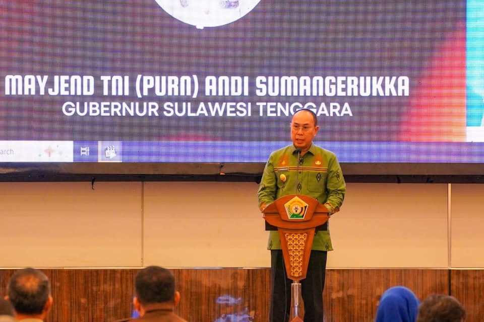 Kendari, — Gubernur Sulawesi Tenggara (Sultra), Mayjen TNI (Purn) Andi Sumangerukka, secara resmi membuka kegiatan Sosialisasi Peraturan Presiden (Perpres) Nomor 46 Tahun 2025 tentang Perubahan Kedua atas Perpres Nomor 16 Tahun 2018 tentang Pengadaan Barang/Jasa Pemerintah. Acara ini diselenggarakan di Hotel Claro Kendari dan dirangkaikan dengan penandatanganan Kontrak Payung Konsolidasi Pengadaan Pakaian Dinas Harian (PDH) dan Alat Tulis Kantor (ATK) lingkup Pemprov Sultra.