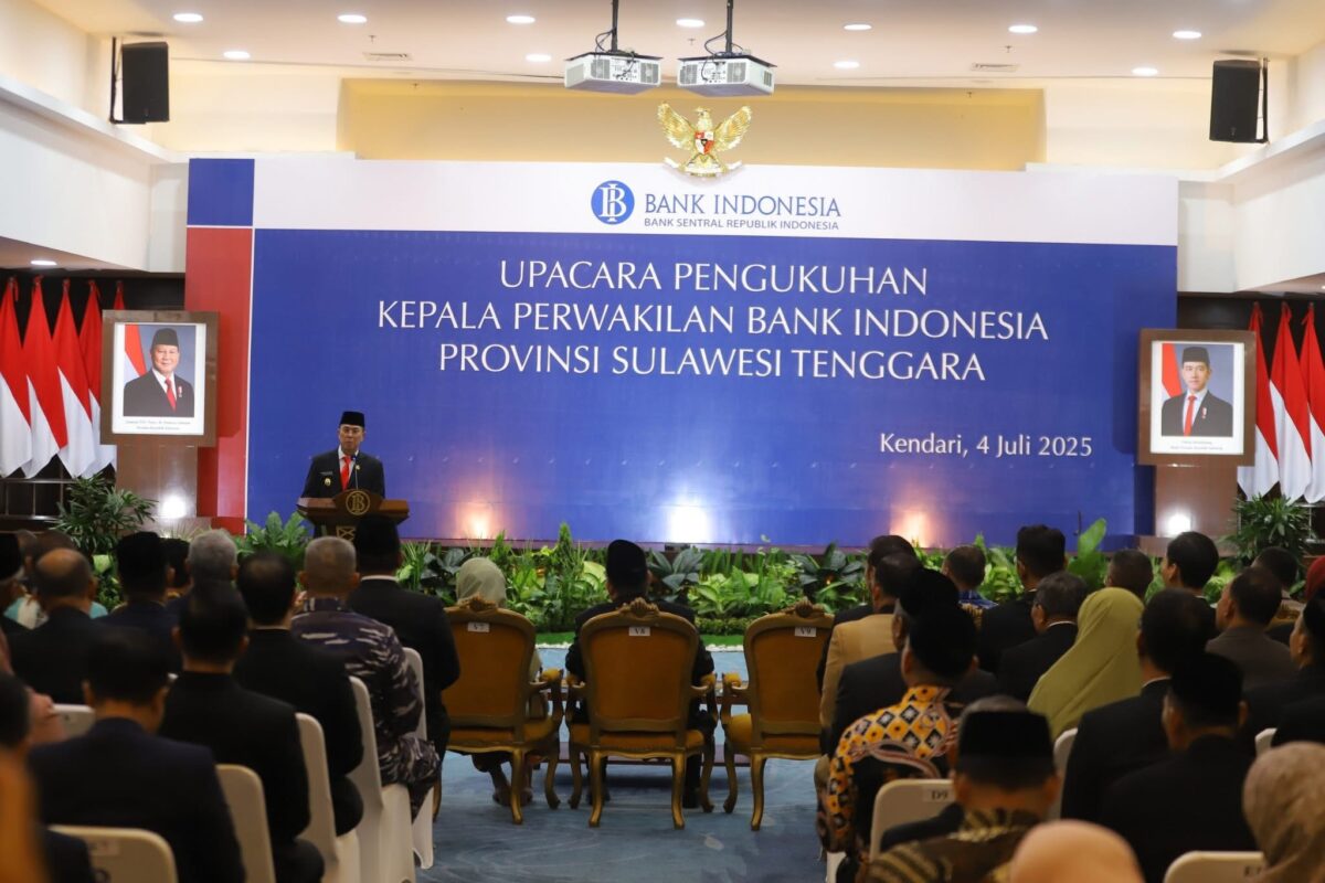 Kendari,— Gubernur Sulawesi Tenggara, Mayjen TNI (Purn) Andi Sumangerukka menghadiri upacara pengukuhan Kepala Perwakilan Bank Indonesia (BI) Provinsi Sulawesi Tenggara yang berlangsung di Aula Wakatobi, Gedung KPw BI Sultra, pada Kamis (4/7/2025).