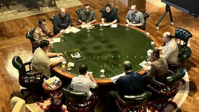 Presiden Prabowo Subianto menggelar rapat terbatas bersama sejumlah menteri kabinet di kediaman pribadinya di Hambalang, Bogor, Jawa Barat, Minggu (11/1/2026). Pertemuan tersebut membahas langkah pemerintah dalam memperkuat sektor industri strategis dan mendorong investasi bernilai besar pada awal 2026.