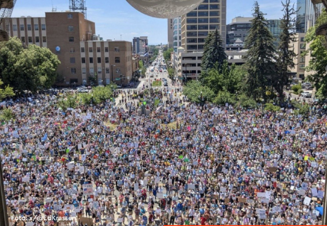 Washington, D.C. — Ribuan warga Amerika Serikat turun ke jalan di berbagai kota besar pada Minggu malam waktu setempat, sebagai bentuk protes keras terhadap keputusan pemerintah AS melancarkan serangan militer ke tiga lokasi nuklir di Iran. Di tengah suasana penuh ketegangan, massa meneriakkan yel-yel: “Trump Harus Pergi! Tidak Ada Perang Atas Nama Kami!”