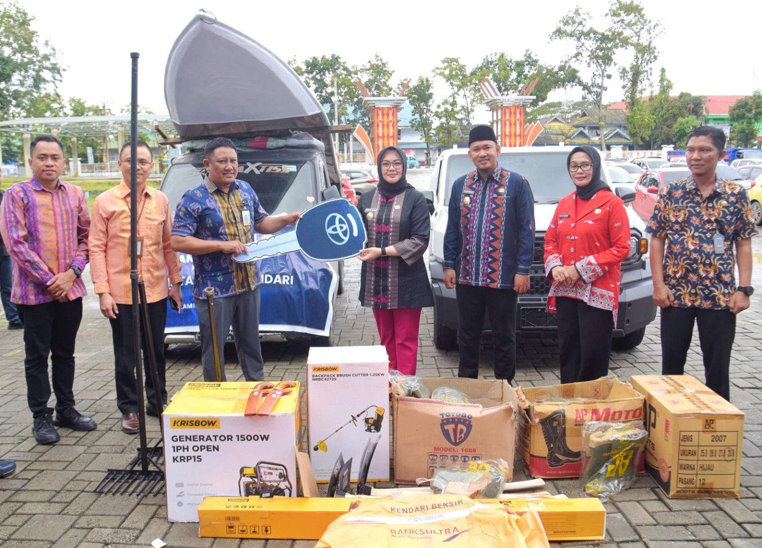 Bantuan yang diserahkan kepada Pemerintah Kota Kendari pada Kamis (3/7/2025) meliputi satu unit mobil operasional, satu unit perahu untuk pengangkutan sampah sungai, serta sejumlah perlengkapan kebersihan seperti sepatu anti air, pakaian kerja lapangan, alat pengangkat sampah (skupang), mesin pemotong rumput, hingga generator air (alkon).